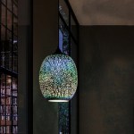 Illuminate your space with this modern 3D glass pendant light designed as a stunning fireworks chandelier. The colorful oval-shaped lamp is crafted from iron with thick, textured artificial blown glass covers, offering a unique and sophisticated look.